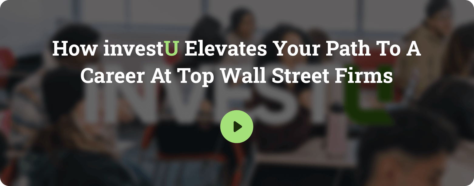 Breaking into High Finance on Wall Street is one of the toughest challenges for students. InvestU equips you with technical mastery, interview skills, and direct coaching so you can outcompete your peers and secure offers at top firms